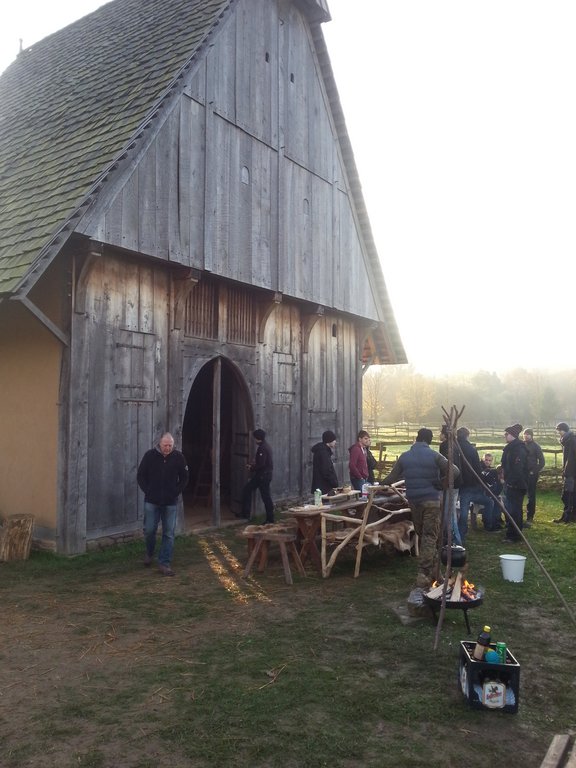Nach dem Kennenlernen der Gegebenheiten und einem leckeren Mittagessen mit Köstlichkeiten der Region warteten einige Herausforderungen, die glänzend gemeistert wurden: Das Aufstellen der Großjurte als Schlafstelle, das Vorbereiten der Feuerstelle zum Kochen und Wärmen, das Anheizen des Backofens und das Kräutersammeln für das mittelalterliche Kochen waren in Kürze mit viel Engagement und Spaß an der Sache erledigt.